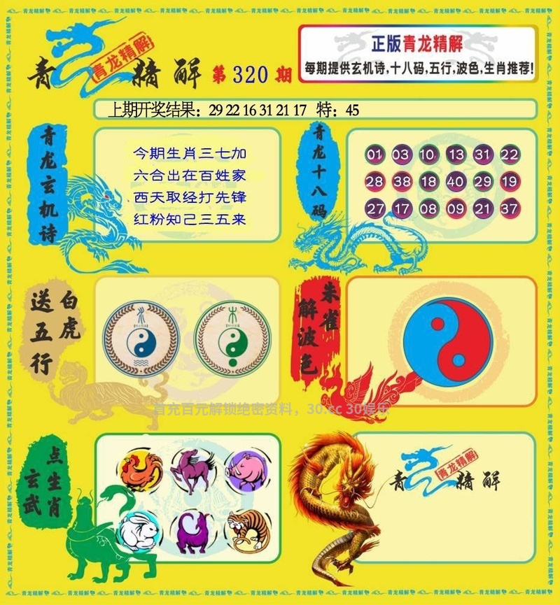 317期:【正版青龙图精解】双手接福五福归.八挂算得精又准.此肖平生最霸气.粒粒蓝珠三门开 |